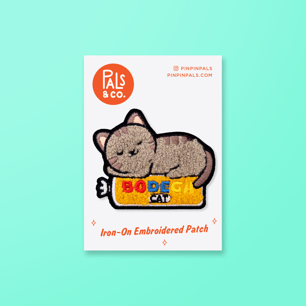 This cozy and playful patch from Pals & Co. is perfect for cat lovers and anyone who adores the charm of a neighborhood corner shop. Featuring a sweet, snoozing kitty perched on its favorite snack, this patch adds a warm pop of personality to jackets, backpacks, hats, and more.
